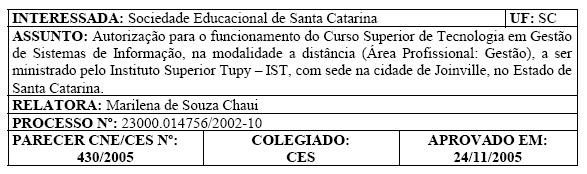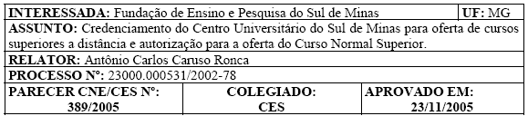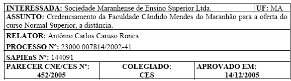 Conselho Nacional de Educação, que credenciou, em 1988, as primeiras
