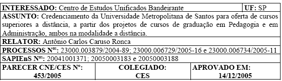 favoravelmente ao credenciamento da Universidade Metropolitana de Santos